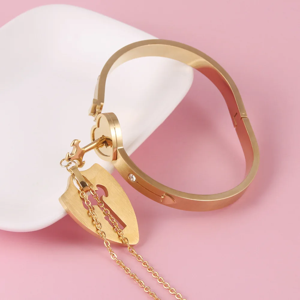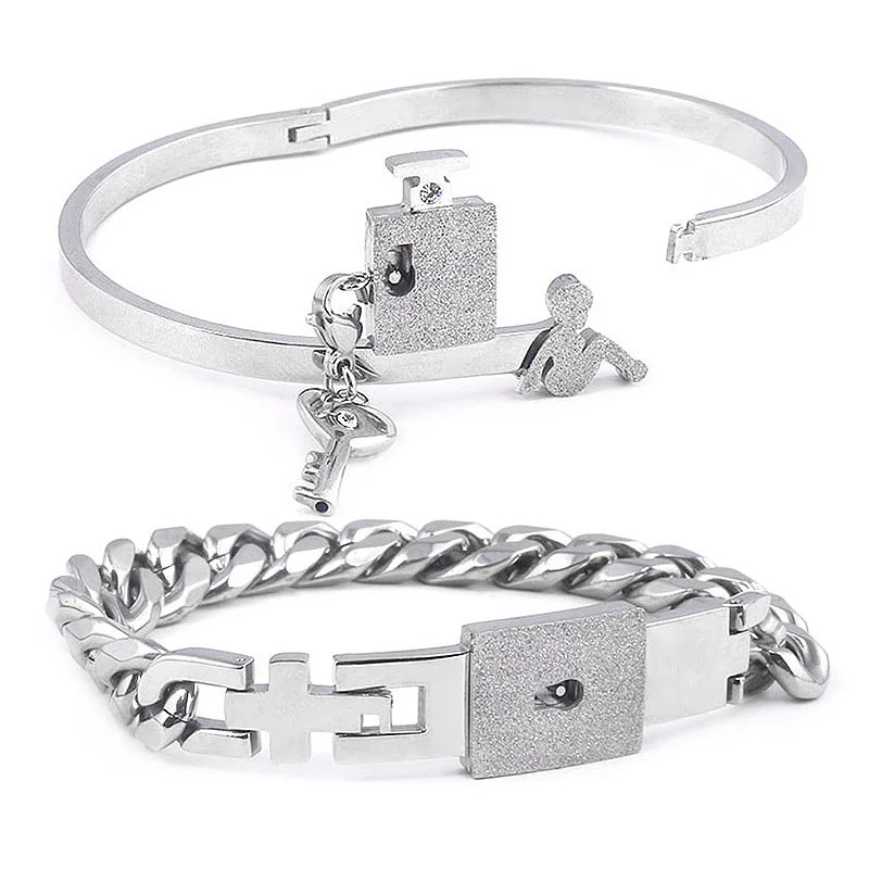 Couple Jewelry Stainless Steel Bracelet Love Lock Bracelet Can Be Opened Key Pendant Necklace Men And Women Valentine's Day Gift