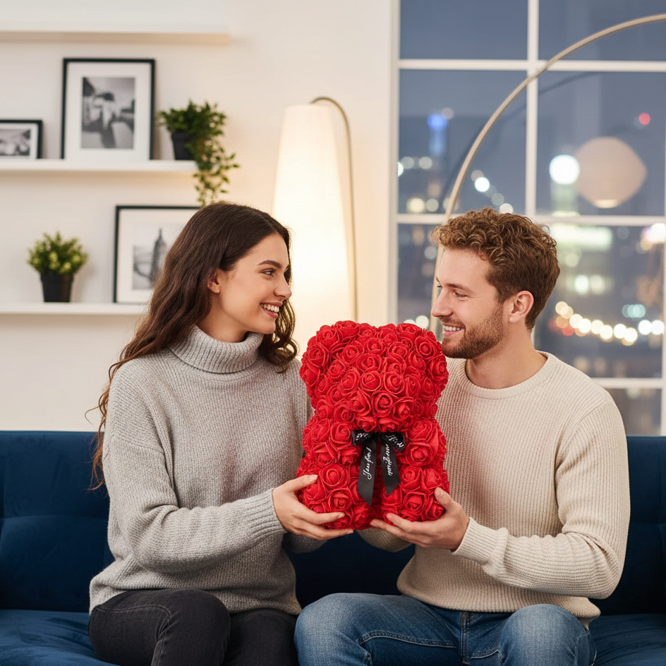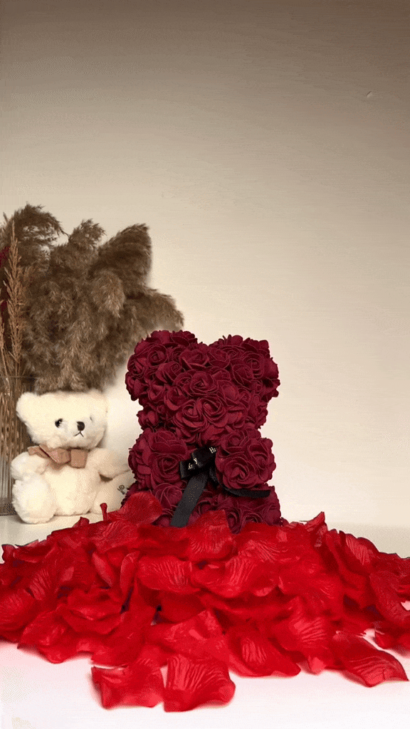 Róże więdną, ale wspomnienia zostają na zawsze. ❤️ Podaruj jej Romantic RoseBear™ – unikalne połączenie delikatności i trwałości. To tysiąc niemych słów zamkniętych w setkach wiecznych płatków, które nigdy nie stracą swojego blasku